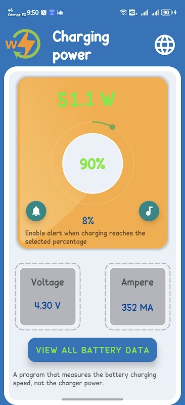 Test your device's charging speed and set an alert when charging is complete.