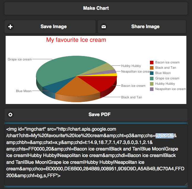 Generates and get charts and qr code in an instant. Save it as an png image into your external storage or share them via email or export them to PDF. You can set the size for both. For charts, you can change and update data, the colors of the title, and background of the individual values, types, and finally the size of the graph with the captions and legend