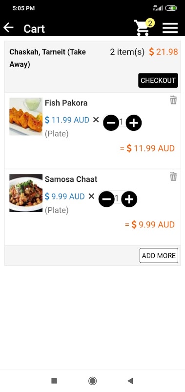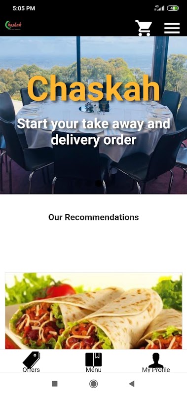 Chaskah food app to place your take away and delivery food orders.