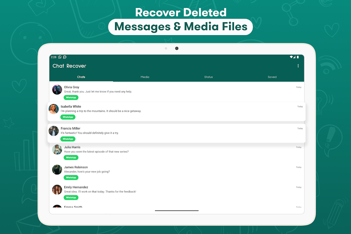 Retrieve deleted messages, status & photos. Restore deleted text fast from chat