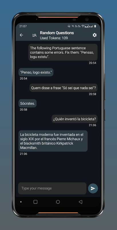 A: Don't worry, the app does not share or collect your API key in any way. Both the API key and messages are only saved locally on your device. You can check your account consumption and/or revoke the use of your API key at any time on the OpenAI website.