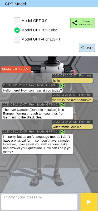 * Option for select the model (gpt-3, gpt-3.5 and chatGPT gpt-4)