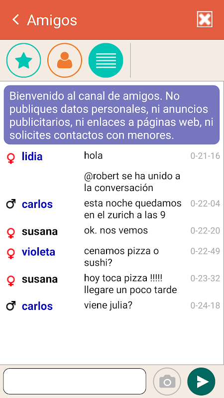 Dispones de múltiples salas de conversación, por temas, por ciudades y por aficiones en las que conocer gente afín.
