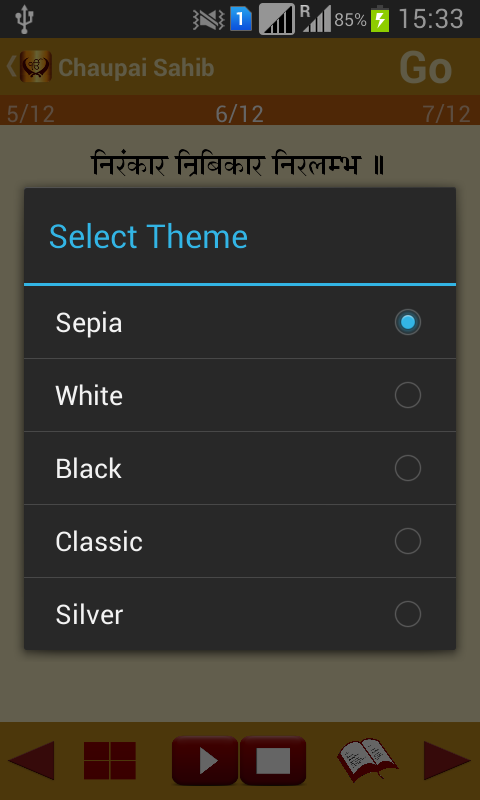 # Select from 5 themes - Sepia, Classic, White, Black, Silver