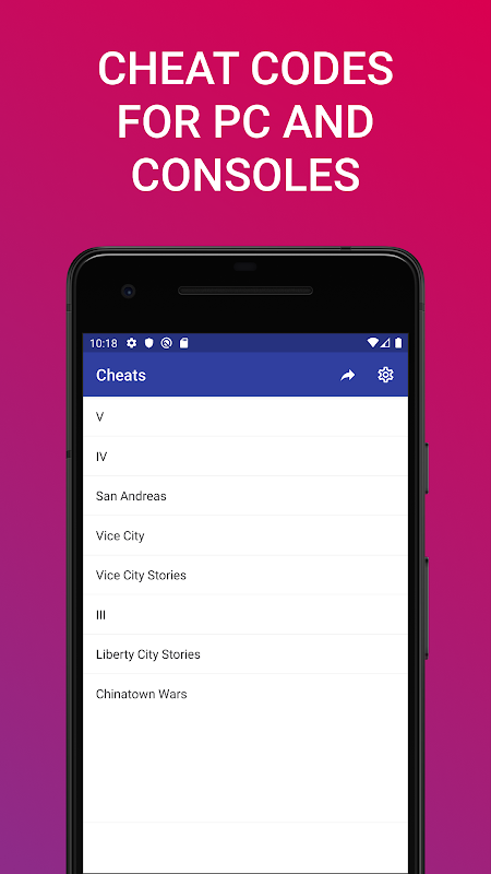 This app contains a complete list of cheats for games that are available across all platforms.