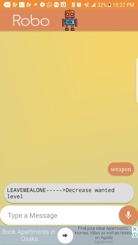 Cheats for GTA VC Guide - Robo ChatBot is an artificial intelligence chat bot, and it tries to simulate an intelligent conversation with users.Cheats for GTA VC Guide - Robo ChatBot has its own personality. It will Guide you about GTA vice city cheats