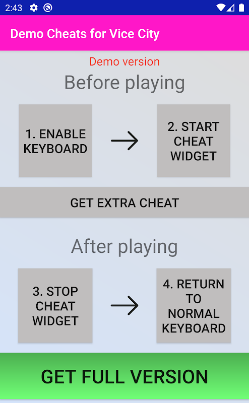 APKPure uses signature verification to ensure virus-free Cheats Keyboard Demo for Vice APK downloads for you.