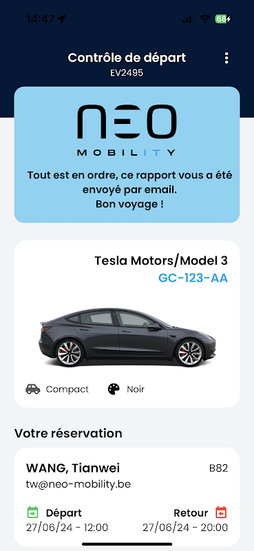 Check&Go offers you a simple, quick and effective solution to ensure that your vehicle is in perfect condition before driving off. Perform a complete visual inspection, document any damage with time-stamped photos, and generate detailed reports for complete peace of mind.