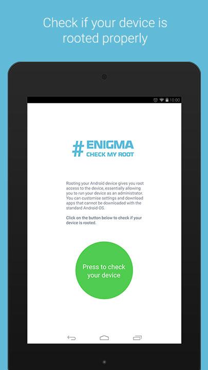 This app will not root your device, but it will confirm for you if your device has been successfully rooted. Our 2 step process couldn’t be easier - simply install this app on your device and tap on a button to check if you phone is rooted or not.