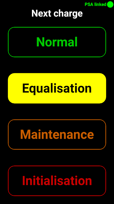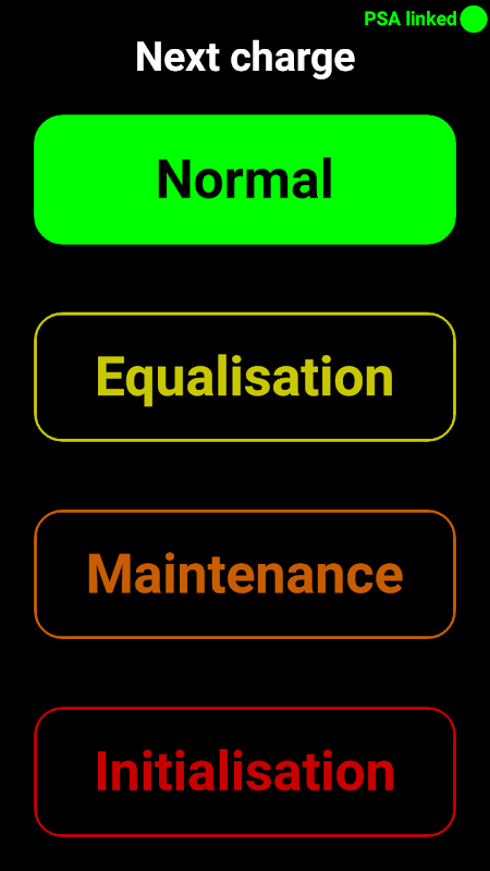 - Change the charge type (Normal, Equalisation, Maintenance, Initialisation)