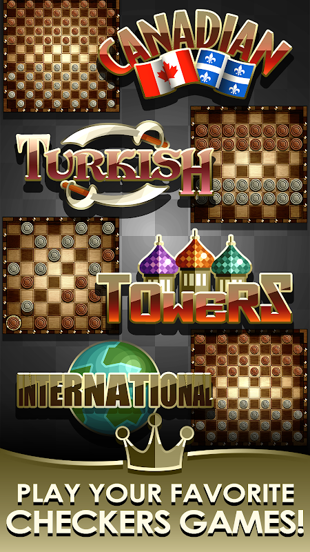 • 5 game modes: American Checkers, International, Canadian, Towers and Turkish Draught!