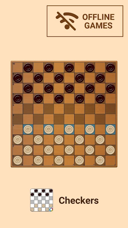 Checkers (also known as Draughts) is a classic board game. Checkers (Draughts) trains your brain with classic Checkers (Draughts) board experience. It is an offline game which you can play Checkers (Draughts) anytime and anywhere.