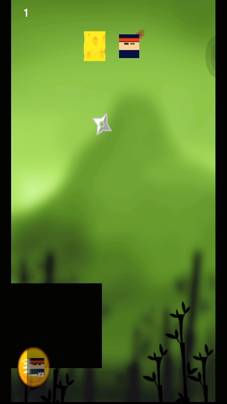 Jump and collect the cheese, but watch out for dangerous ninja stars