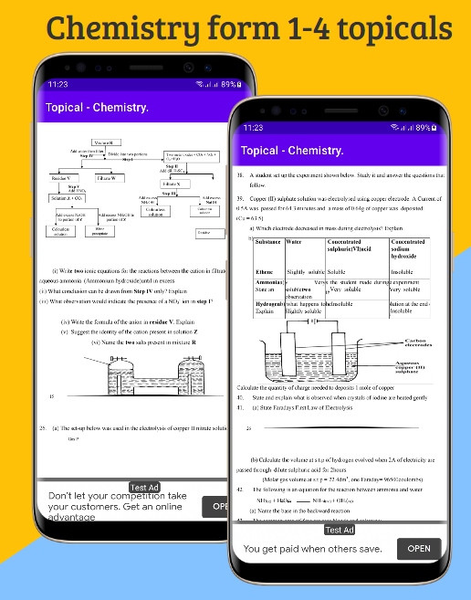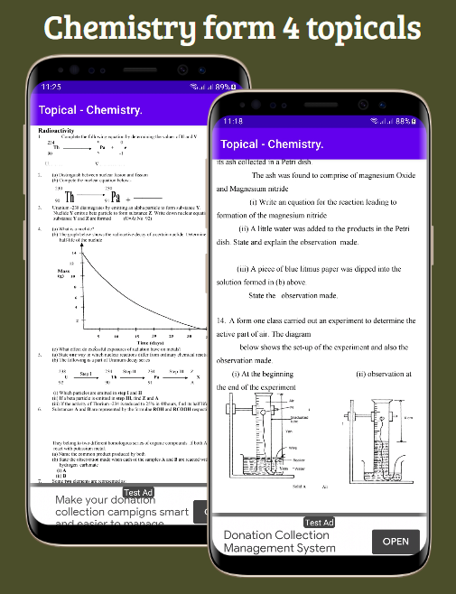 Chemistry: Topical Questions application has gathered topical questions and their answers from form 1 - form 4. The application equips learners and users with knowledge in Chemistry. It prepares students for their Kcse exams.