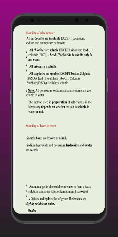 The app contains chemistry notes