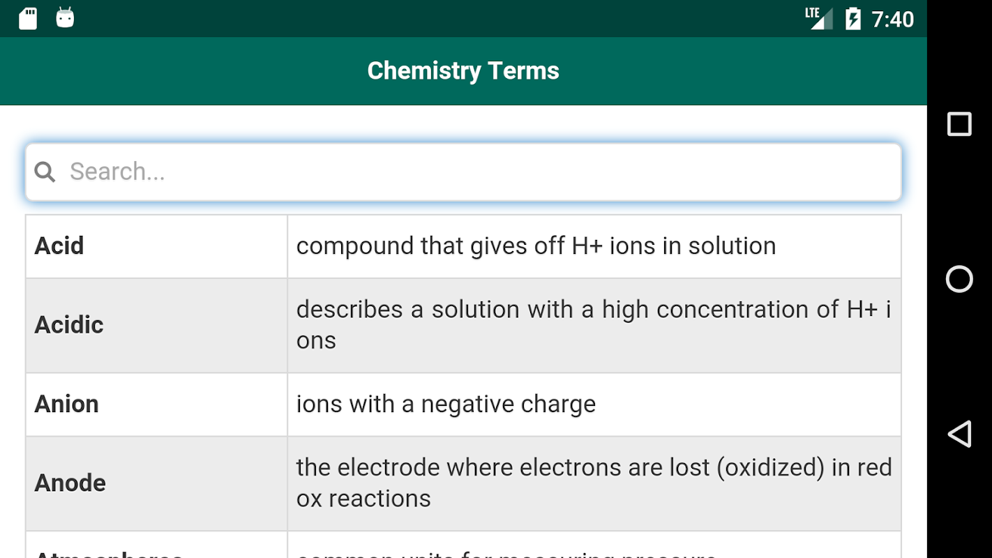 Essential Chemistry Terms for taking preparation for exam. Glossary of chemistry terms offers definitions for terms which are commonly used in chemistry and chemical engineering. Take exam preparation using this app. You will able to learn key concept of Chemistry. Look up definitions of common and important organic chemistry terms from this app. You will able to search concept in this app. Content on this app is offline. So you can use without internet too.