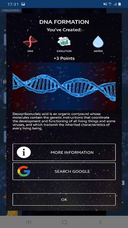 Start with mixtures of basic chemicals (carbon, hydrogen, oxygen, etc.) and discover new compounds and molecules. As you progress through the game, common everyday elements will appear!