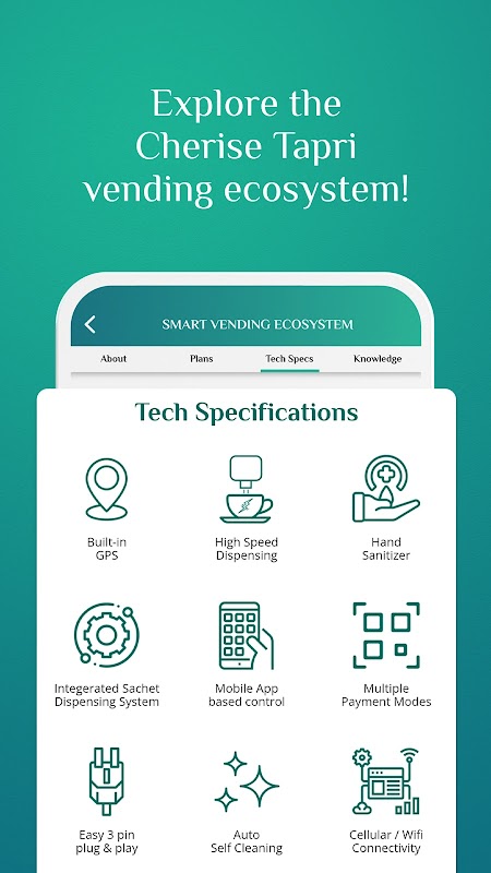 These vending machines are currently one of India’s most advanced, hygienic, fully contactless beverage stations which dispense a wide variety of Cherise beverages on demand, in seconds. The technology, the designs, the IoT dashboard, the assembling, the deployment as well as the maintenance is fully owned and managed by Cherise. Multiple patents for their products and the technology have been filed, and the technology used by Cherise smart vending machines is miles ahead of anything else that is currently available in the Indian market.