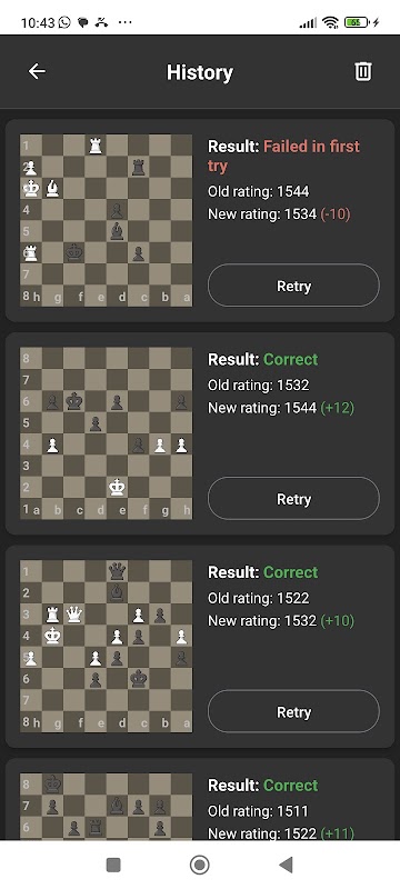 Challenge yourself with an intelligent puzzle selection system that adapts to your skill level. Each solved puzzle affects your rating, ensuring continuous growth and learning. Face progressively harder challenges as you improve!