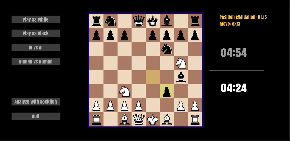 Welcome to Chess Game: game designed to bring out the grandmaster in you! Immerse yourself in this classic game of strategy and tactics, as you pit your skills against a powerful AI, challenge a friend, or sit back and watch AI vs AI games unfold.