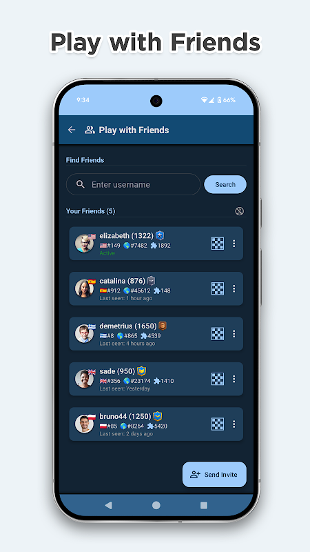 • Playing chess with your friends - you can invite your friends to play and accept invitations from others