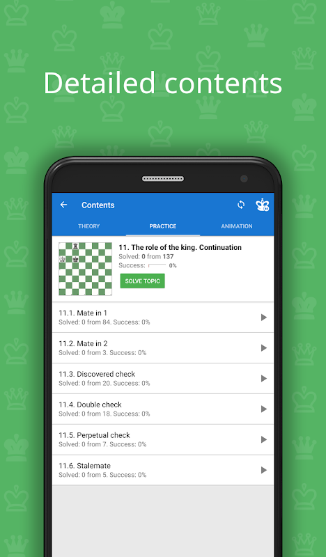 ♔ You can link the app to a free Chess King account and solve one course from several devices on Android, iOS and Web at the same time