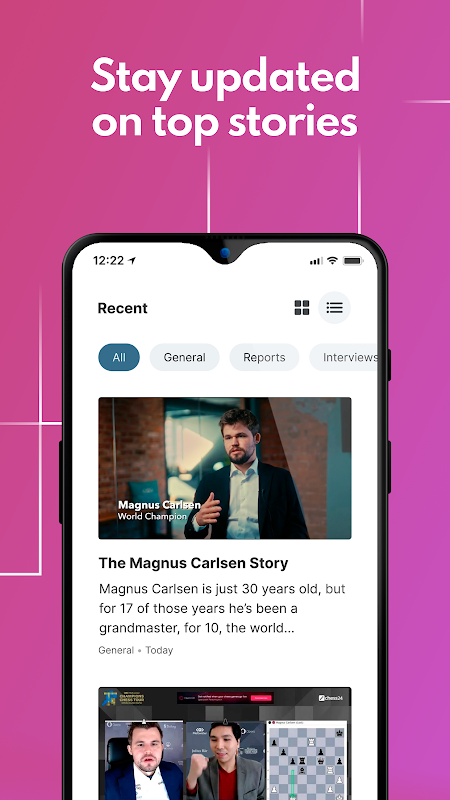 - A dedicated news section containing the latest chess tournament reports, interviews and more