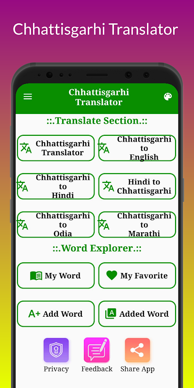 * Free Chhattisgarhi Translator app.