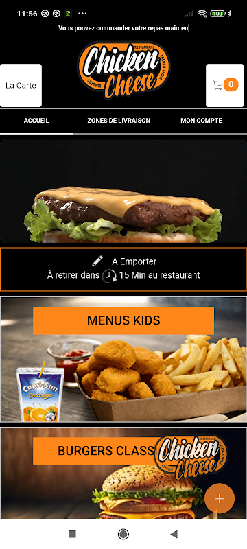 L'application android Chicken Cheese vous permet de commander en ligne