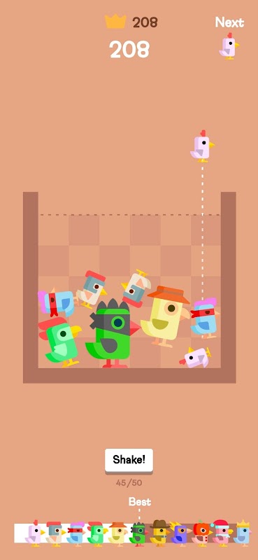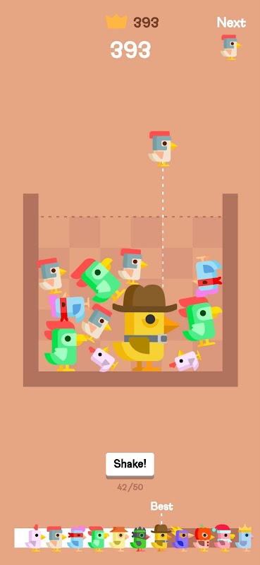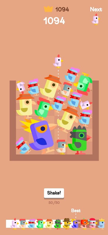 Dive deep into the vibrant and enthralling world of chicken-matching with our exciting game, Chicken Merge: Match Drop Game! 🐥🍳 When the same chickens collide, they merge into a larger, fluffier chicken. Your mission is to smartly pair the same types of chickens to create the biggest and most extraordinary chickens without letting them overflow from the coop. As the chickens grow in size, space becomes precious – managing it effectively is your ultimate challenge. Can you strategize and master this egg-citing puzzle?