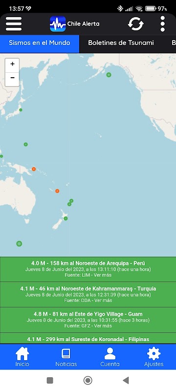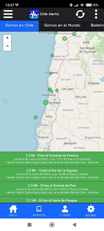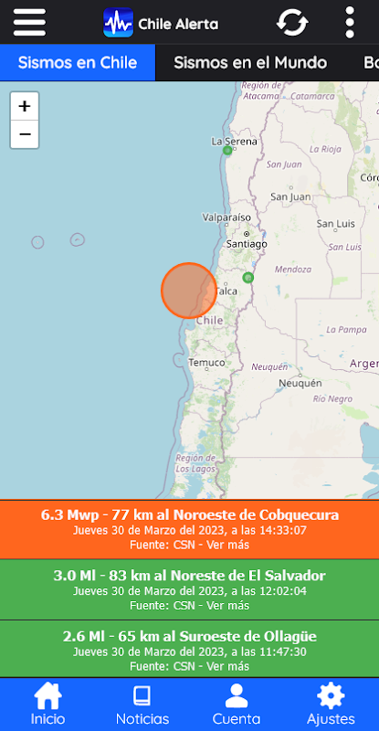 Seismic alerts in real time, reports of earthquakes, Tsunami and more for Chile