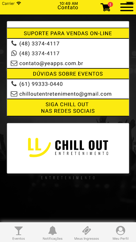 Viver momentos reais nunca foi tão fácil, com o APP Chill Out você vivencia esses momentos sempre aproveitando em primeiríssima mão a abertura de nossas pré-vendas, ingressos com descontos exclusivos e você ainda participa de promoções que são disponibilizadas apenas pelo APP Chill Out.