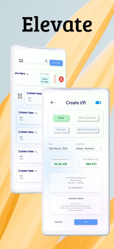 Chitthi offers effortless invoicing, empowering you to effortlessly create issue invoices, receipt invoices, and bhav-cut invoices. Additionally, it provides a comprehensive total balance dashboard for a complete financial overview