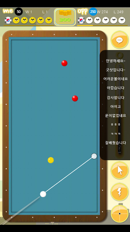1. Pay a coin used in our app and you can play a multiplay choo-choo billiards carom game.