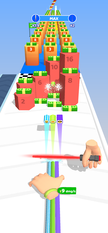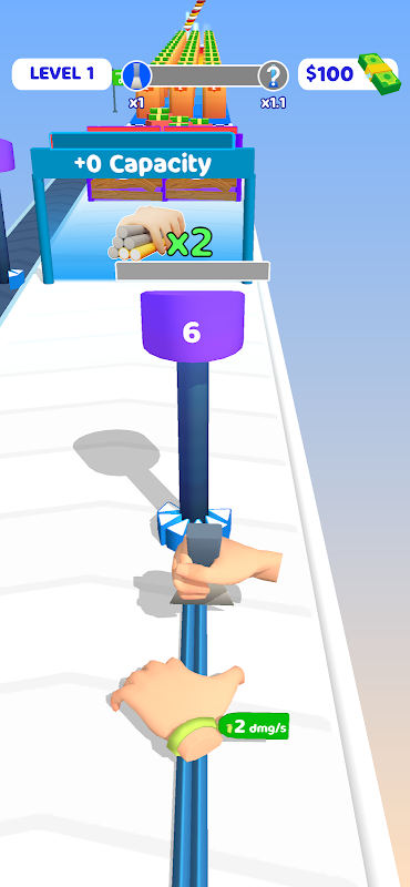 Cut the sticks with a spatula and hit the targets. Align your sticks around the pillar to increase your capacity.
