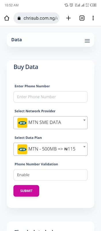 DATA: Buy and resell cheap data (+SME) on chrisub.com.ng and make money with us. We offer the cheapest data bundles for all networks. 1GB = ₦225 for Resellers/VIP Users.