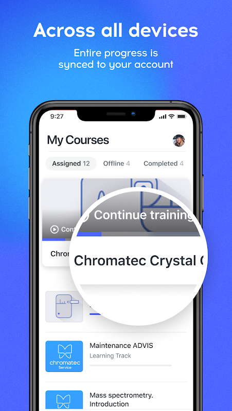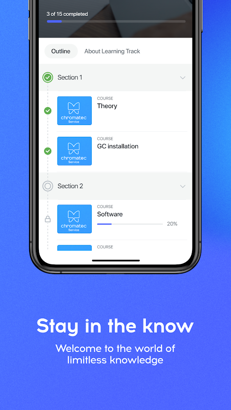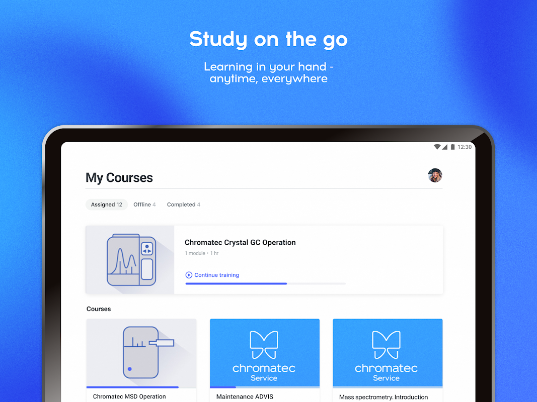 The mobile app provides access to the original training courses created by Chromatec. Be the first to know about software updates, new educational materials and other company news. You will be also able to use a knowledge base, interactive software simulators, useful technical materials and manuals, events calendar etc. Using the app, you can contact Chromatec’s technical support for any questions related to the company's products, chromatography methods and troubleshooting.