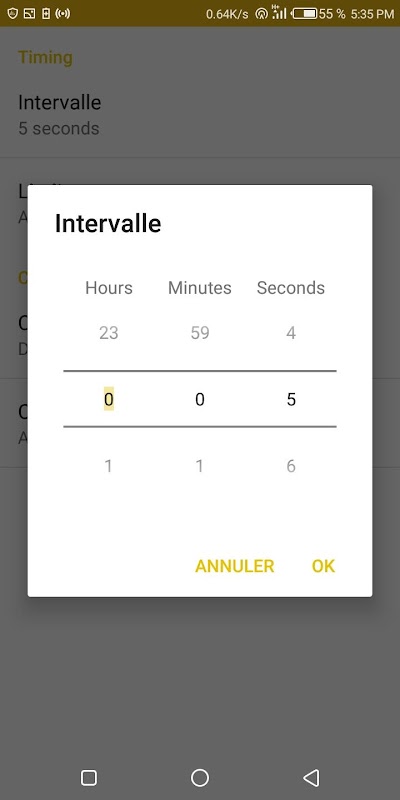 Personnaliser l'intervalle de capture