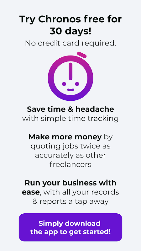 Chronos Time Tracking is a smart project time tracking app that makes it easy for freelancers & small business owners to track time, expenses, and payments against client projects. Chronos combines intuitive project management with smart reporting to help you run your business so you can focus on getting work done rather than crunching numbers. Sick of your usual timesheet? Give Chronos a try and upgrade to a modern time management solution designed specifically with freelancing in mind.