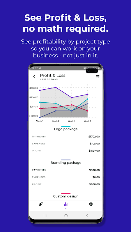 * Key project statistics like total time logged, expenses incurred, and payments owed by client calculated for you
