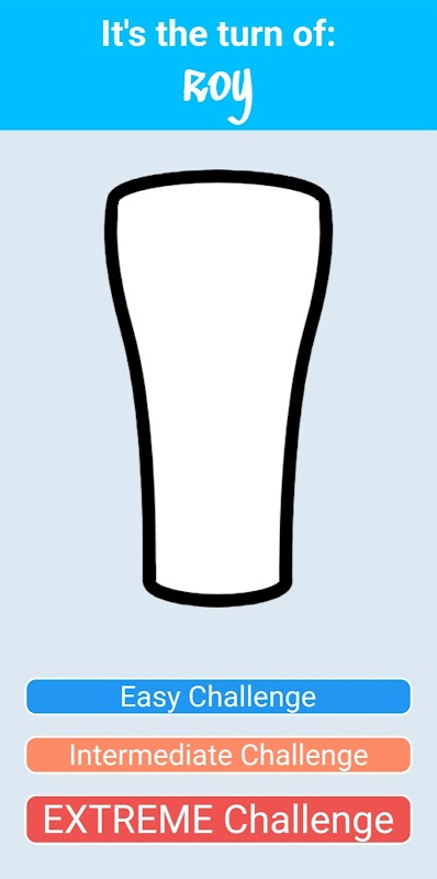There are three difficulty levels for the challenges. The "Easy Challenge" button contains easier challenges, while the "EXTREME Challenge" button offers more difficult ones. The more challenging the challenge, the more alcohol will be added to the cup.