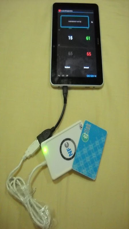 The USB Singapore edition runs on a USB-host-enabled Android device, including Samsung Galaxy S2 (with Android 4.0.3), S3 and Sony Xperia SL smartphones, and Ainol Novo 7 Flame tablets. A contactless smartcard reader should be connected to the device before the application is started. ACR122T and ACR122U from Advanced Card Systems Ltd are compatible readers. They are available from http://www.alphawireless.com.sg at E-Centre @ Redhill.