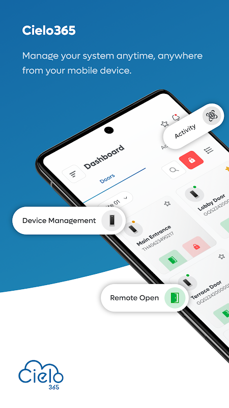 Cielo365 App is a smart, cloud-based access control solution for modern businesses. Manage cardholders, control doors remotely, monitor access logs, and stay on top of security—all from your mobile device.