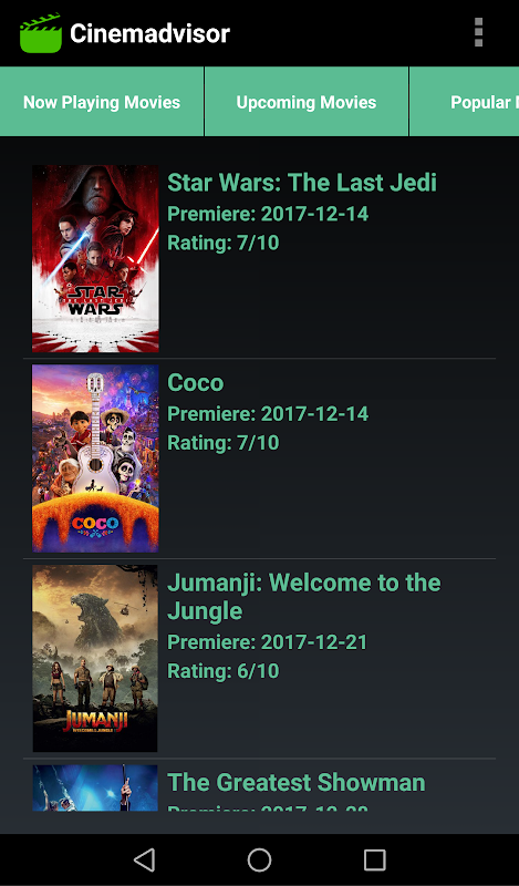 This app has data from API themoviedb(TMDb).Cinemadviros it's a location based application. With Cinemadvisor you can read about 3 categories of movies : Now Playing Movies , Upcoming Movies and Popular Movies. For each movie you can read the overview, see the actors and the trailer of the movie. Download it now an have fun, it's totally free.