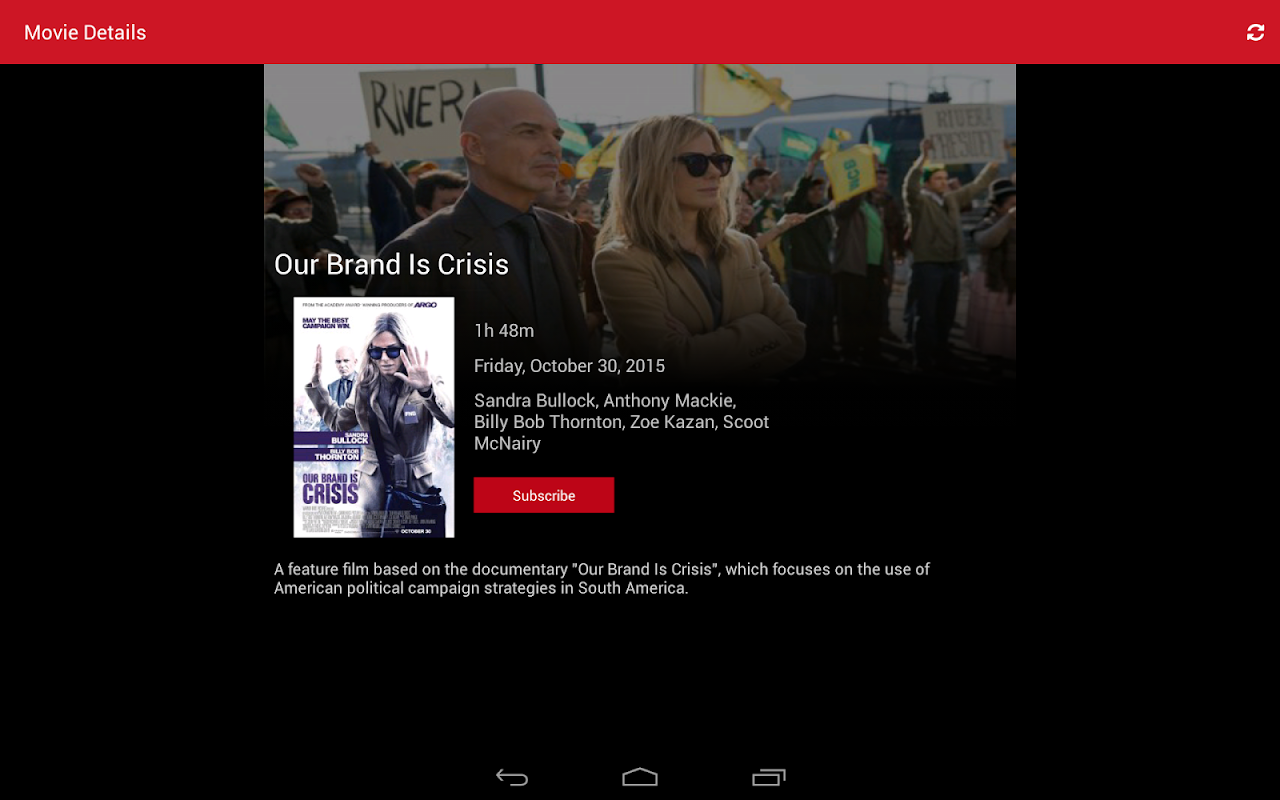 -Get movie details like synopsis, cast and duration