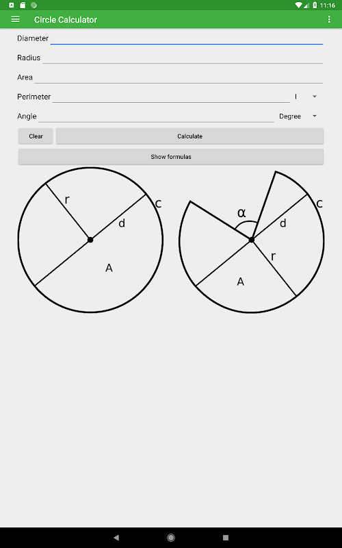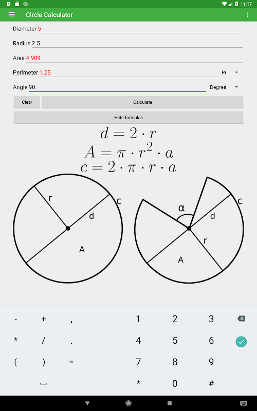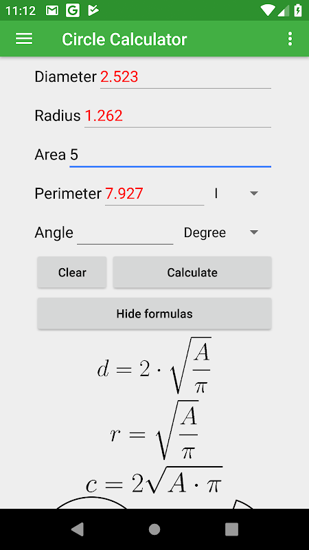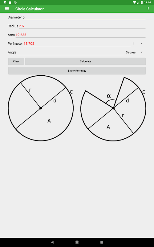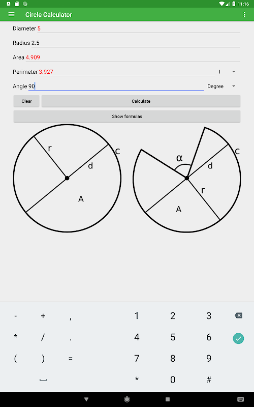 This app offers an easy way to calculate the diameter, radius, area, and perimeter of a circle or arc by entering one value. The app has a great design and an option to switch between degrees and radians to make your workflow as efficient as possible.
