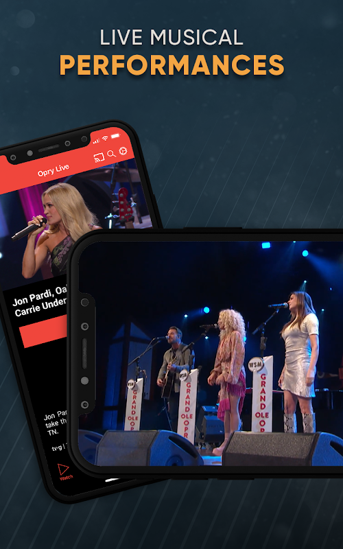 • Opry Live - Live music performances straight from the iconic Grand Ole Opry stage featuring country music’s favorite artists. With new episodes every week, you can enjoy a front-row seat to every Opry show.