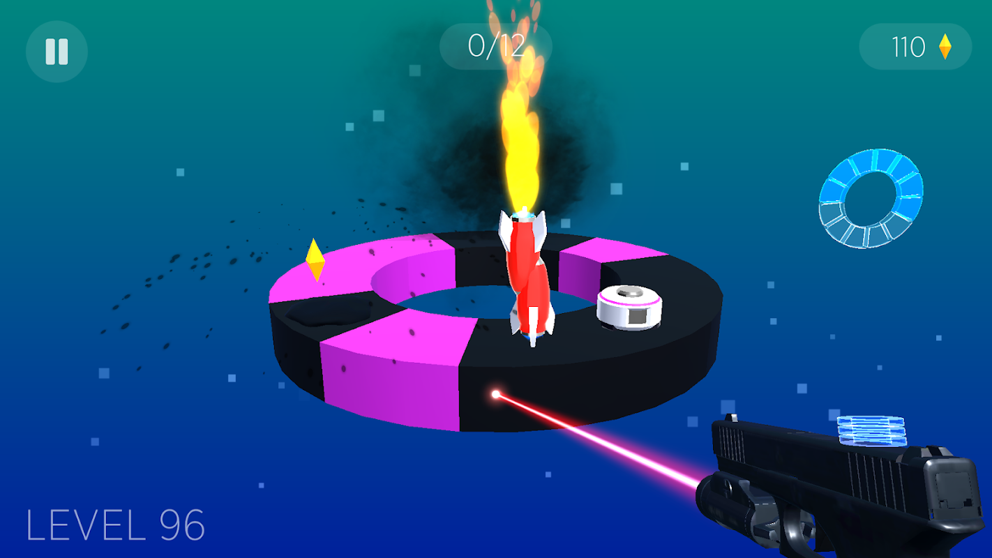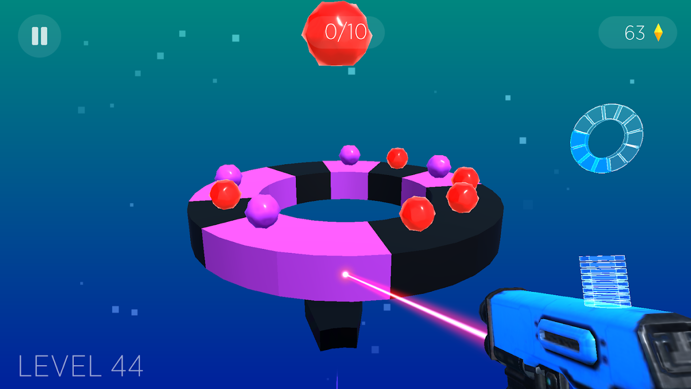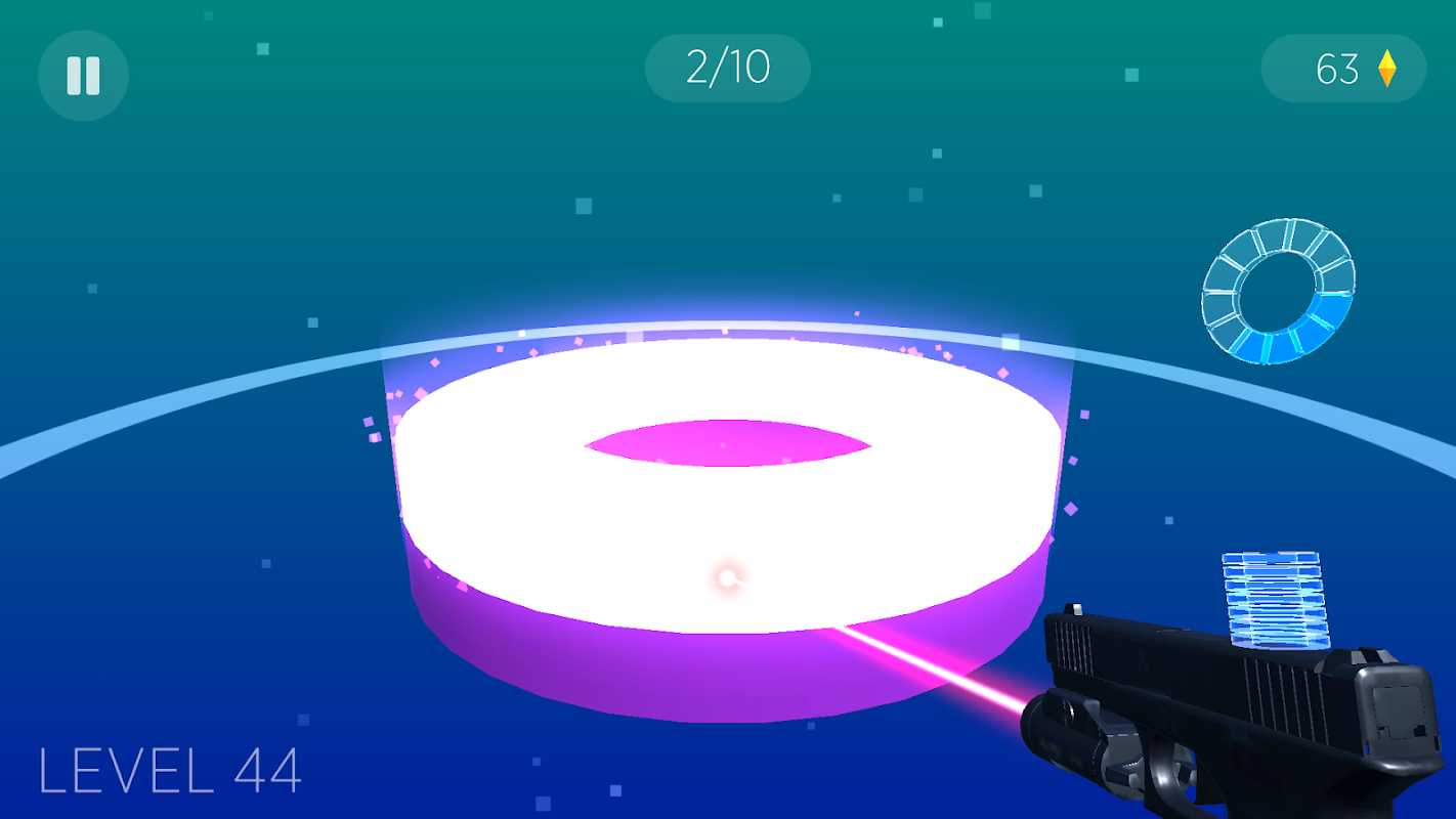Each level contains bad and good bonuses. Shot and rotate circles to make full color ring and build up your tower. Every 10th level you must win final boss with new gameplay. You can unlock new colors, backgrounds and guns.