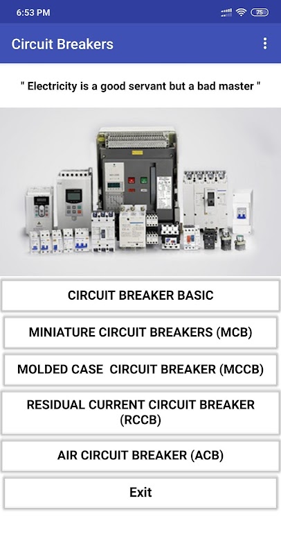 The App would provide the basic details of Circuit Breakers - MCB, MCCB, RCCB and ACB