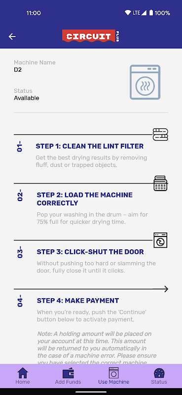 Make doing the laundry less of a hassle with a mobile app that's as easy-to-use as our washing machines and dryers! The Circuit Laundry Plus app* lets you pay for your laundry in seconds... just turn up at your nearest Circuit launderette, load your laundry, choose your machine and payment method, select the programme you want to start - job done!